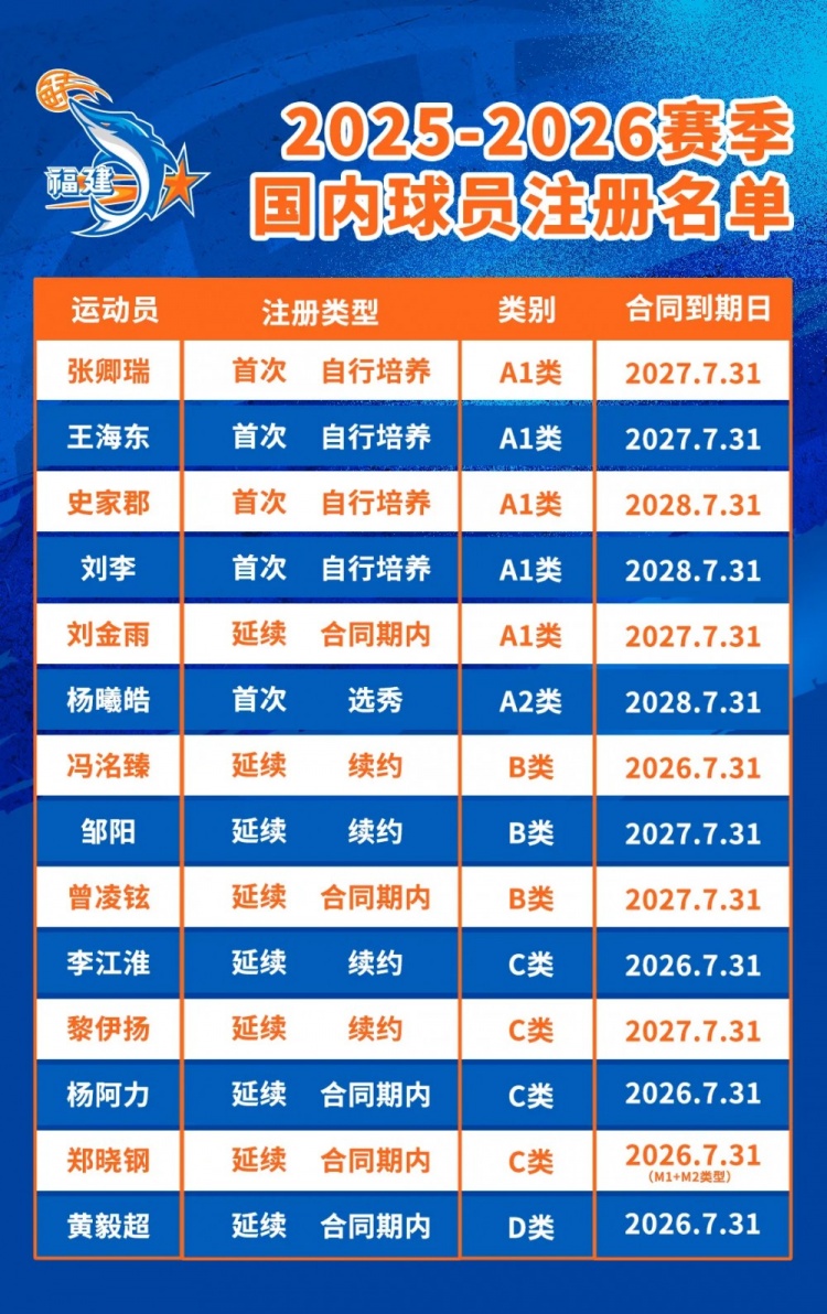 平均年龄23.3岁!公告∣福建浔兴篮球俱乐部25-26CBA联赛球员注册